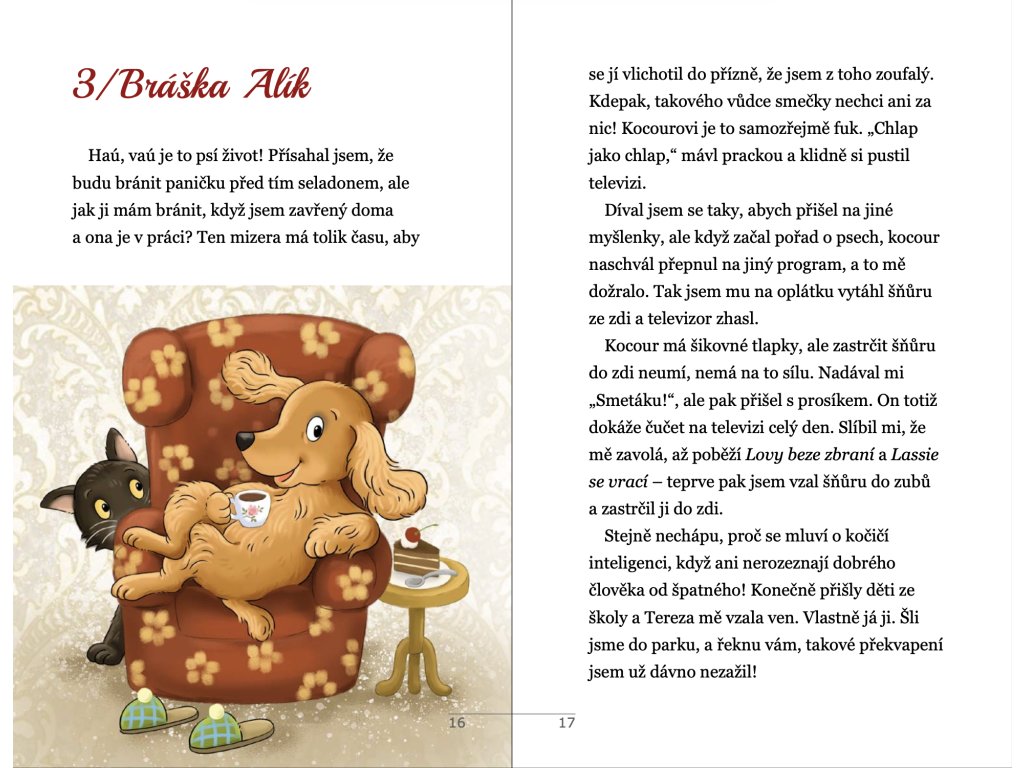 Víte, proč se říká psí život? Protože my psi máme život těžký. Lidi pořád vymýšlejí nějaké novoty a svět je jeden velký nepořádek. My to pak musíme napravovat, protože udržovat pořádek je první psí zákon. Tohle vyprávění psa Bobíka o kamarádství, lásce a člověčí smečce, o šťastných chvílích venčení a honiček s kamarádem Alíkem, ale také o nebezpečných dobrodružstvích, když se do vily vloupají zloději, to celé upřímné vyprávění psa Bobíka zapsal Jiří Žáček a barevně ilustrovala Veronika Balcarová.