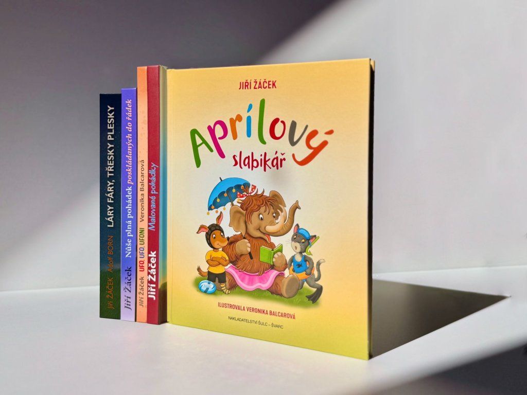 Žáčkův Aprílový slabikář naučí děti celou abecedu, naučí je číst. Básničky, říkanky a hádanky s barevnými obrázky přidávají ke každému písmenu jeho slova a ta slova se spojují v řeč, která se dá číst a psát i říkat zpaměti.